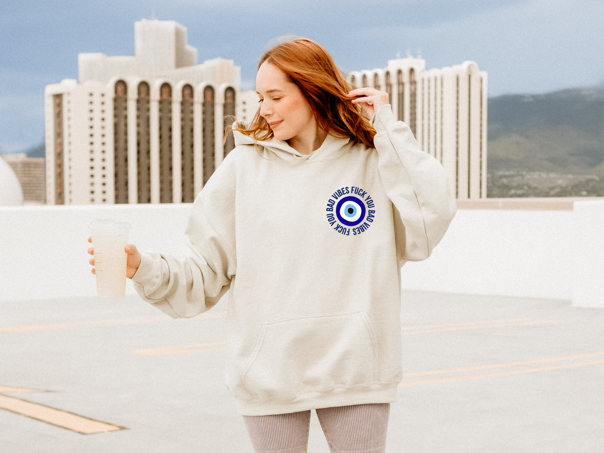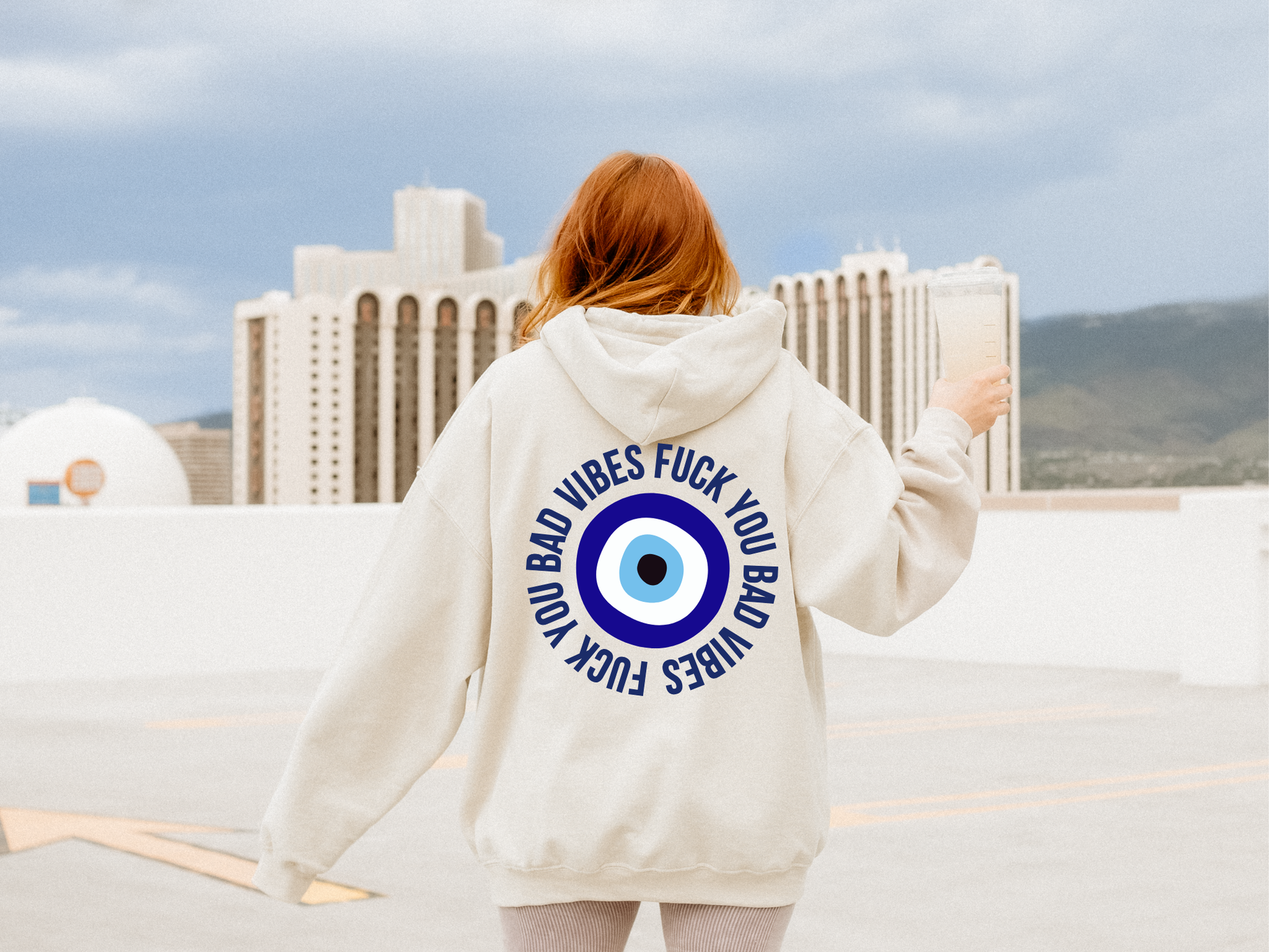 Sudadera con Capucha de Ojo Turco - Fuck You Bad Vibes